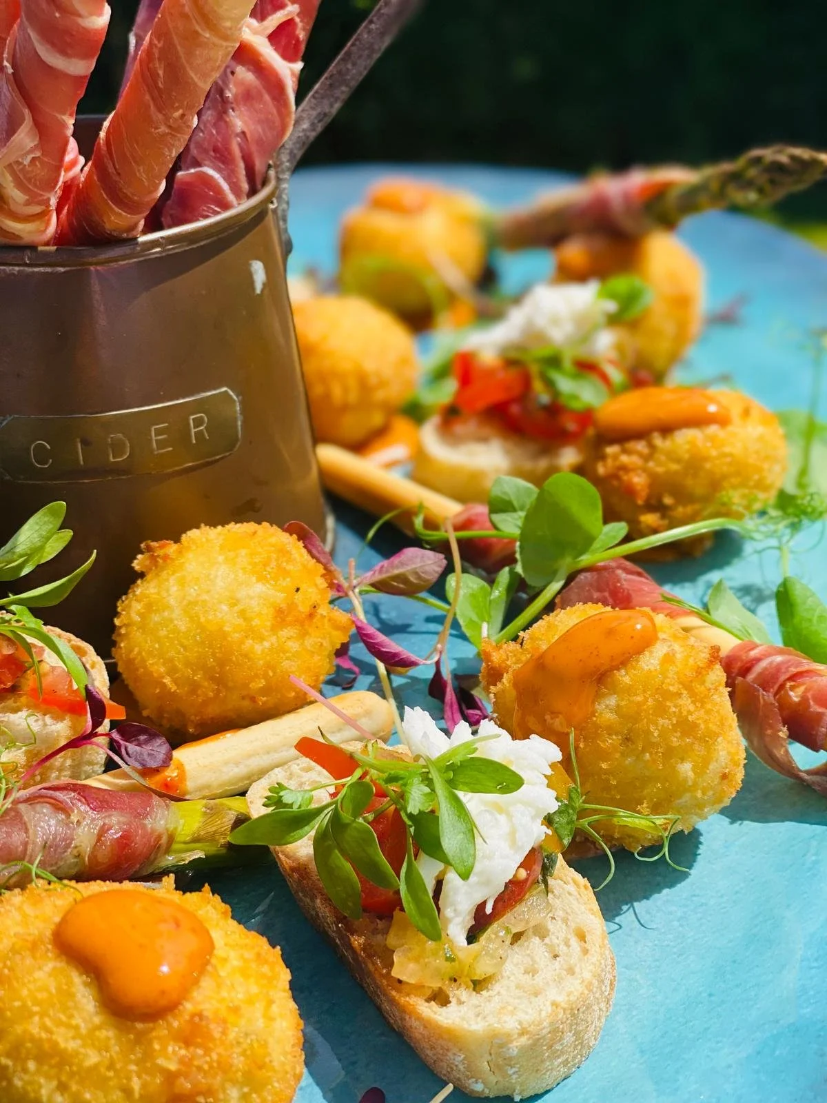 Their cooking style is rooted in the Mediterranean traditions, but also draws in influences and ingredients from around the world. They are famous for their Middle Eastern and Asian vegetable-forward dishes and have served fully vegan or vegetarian weddings, but also love to put on "Best of British" feasts and elegant, modern dishes.